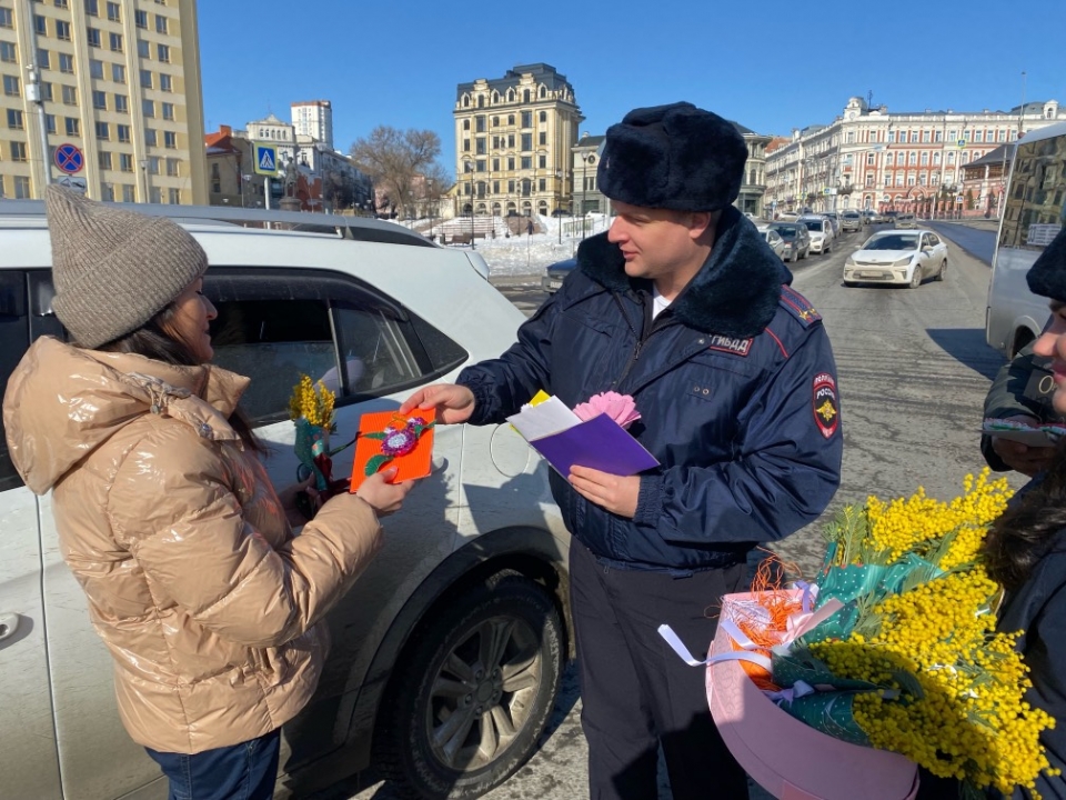 Дорожные полицейские во главе с начальником Госавтоинспекции Саратова подполковником полиции Алексеем Якушиным и представителями Общественного совета при УМВД России приготовили несколько десятков весенних букетов и сладкие подарки, а учащиеся гимназии № 34 сделали праздничные открытки.