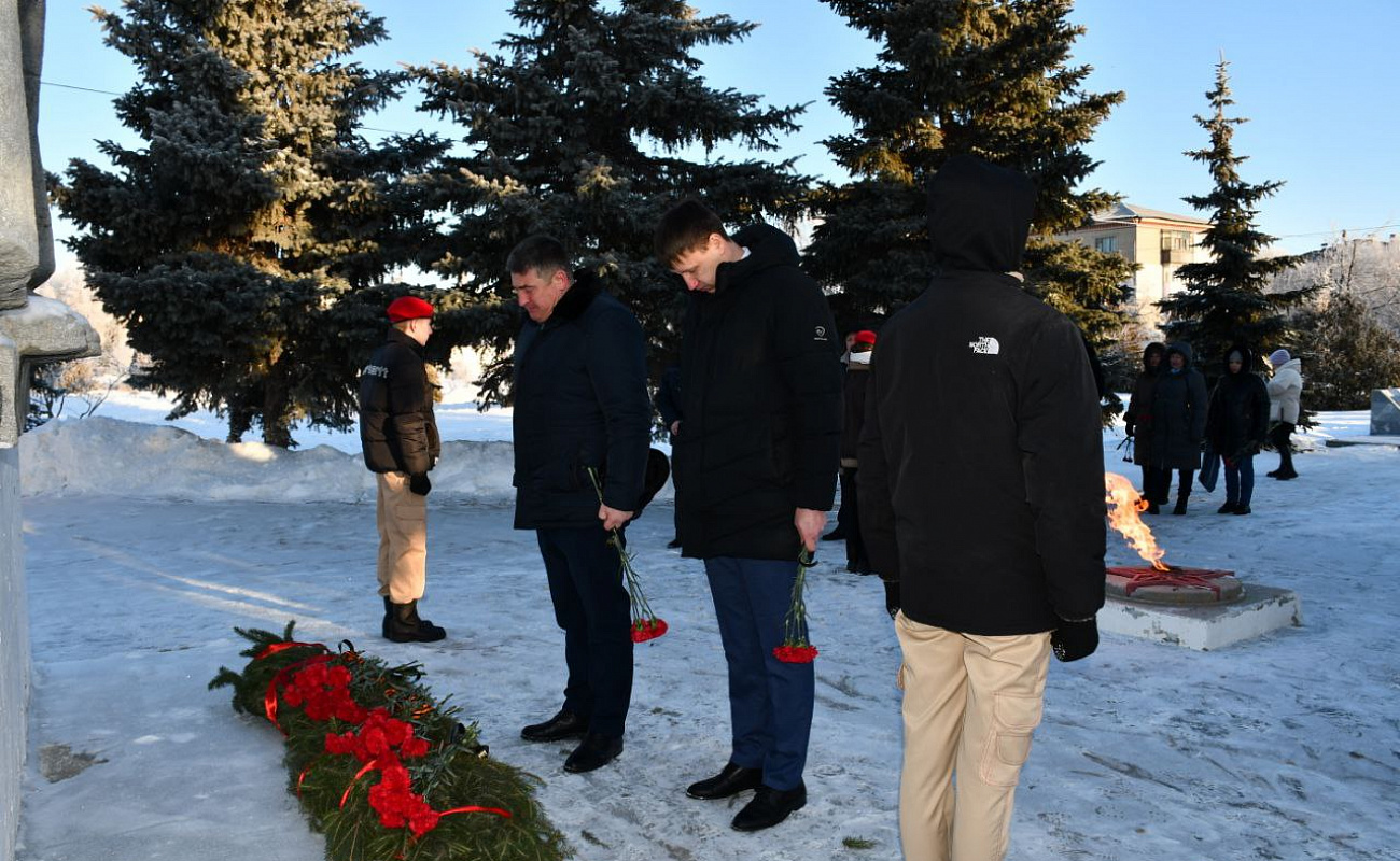 Глава района Сергей Пименов, депутаты, представители учреждений и организаций возложили цветы к памятнику Защитникам Отечества
