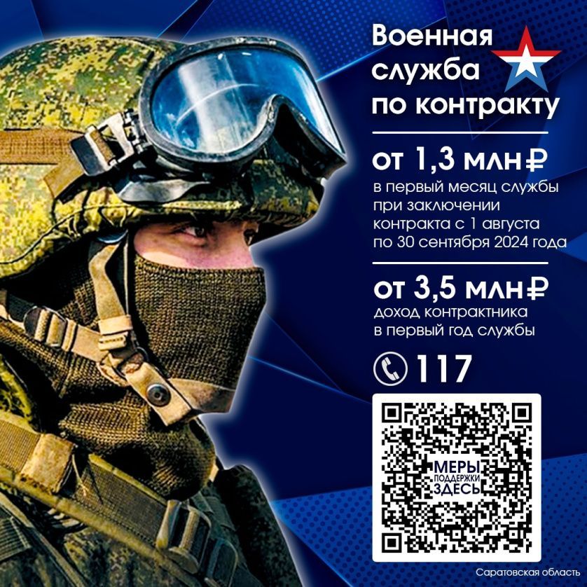 Согласно новым условиям, жители региона смогут получить до 1 миллиона 300 тысяч рублей за первый месяц службы. При этом общий доход контрактника за первый год службы может достигать 3 миллионов 500 тысяч рублей.