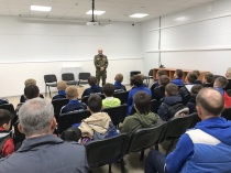 Роман Геннадьевич рассказал о своем боевом пути, об обстановке в зоне проведения СВО, а также о подвиге, за который был награжден Орденом Мужества. Юные спортсмены задавали интересующие вопросы. Сейчас ветеран боевых действий работает в Центральной спортивной школе.
