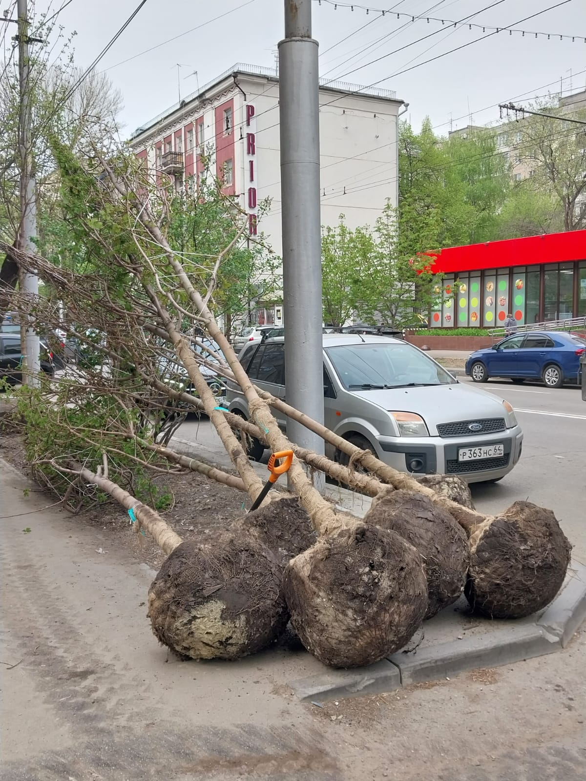 Сегодня по ул. Советская на участке между ул. Вольская и ул. Горького высажено 12 саженцев клена остролистного.
