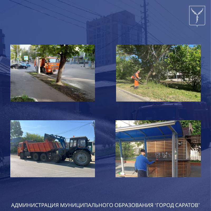 Коммунальными службами проведены механизированная мойка тротуаров, очистка прилотковой части дорог, уборка проезжей части, сбор случайного мусора, покос травы и др.