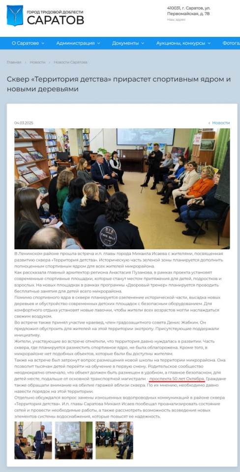 Вчера в Ленинском районе Саратова состоялась встреча и.п. главы города Михаила Исаева , посвященная резонансной теме застройки парка "Территория детства".
