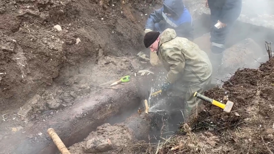 Присланные чиновниками коммунальщики забили в рассыпающуюся теплотрассу чопики