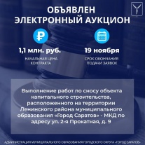 Выполнение работ по сносу объекта капитального строительства (многоквартирного дома, признанного в установленном порядке аварийным и подлежащим сносу), расположенного на территории Ленинского района муниципального образования «Город Саратов» по адресу: ул. 2-я Прокатная, 9.