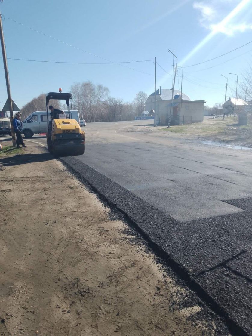 Сегодня специалисты ООО «Дорожник» проводят ямочный ремонт дороги на с. Вязьмино, а также проводят работы профилированию дороги на с. Асметовка.