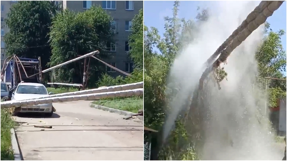 В Заводском районе мусоровоз снес трубы с горячей водой