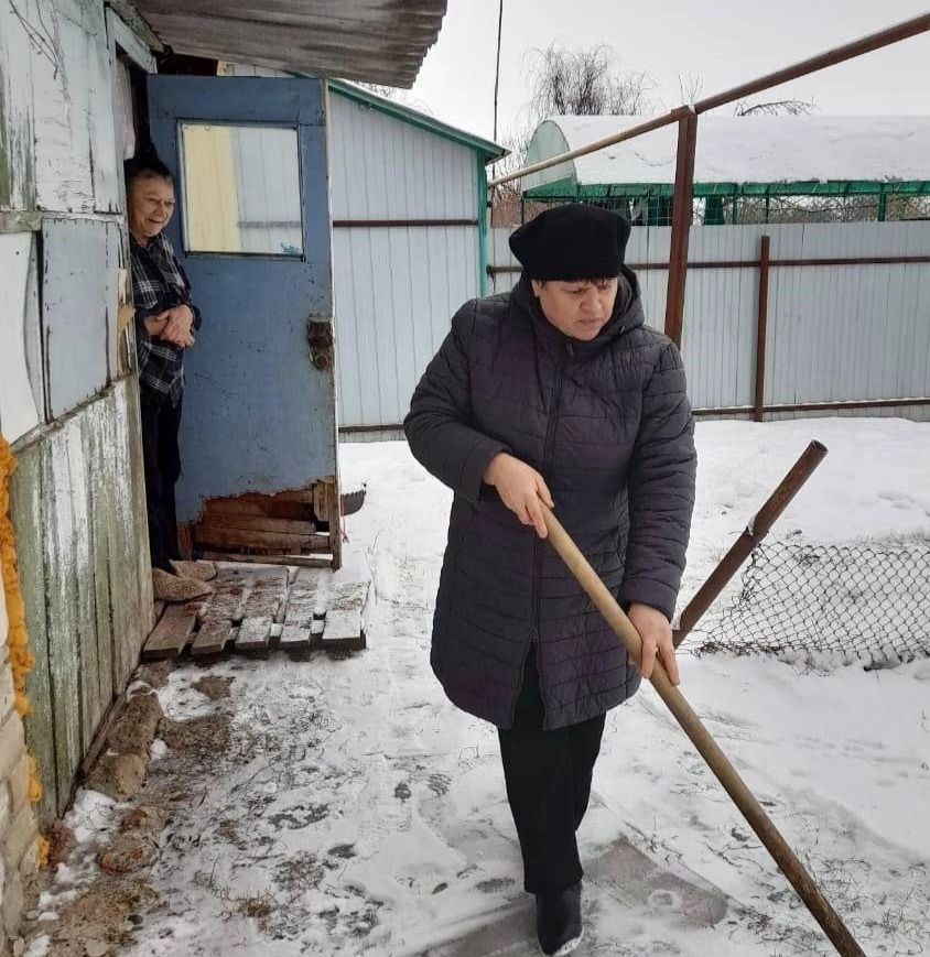 В зимний период социальные работники Комплексного центра социального обслуживания населения Марксовского района помогают пенсионерам очищать снег на придомовых территориях