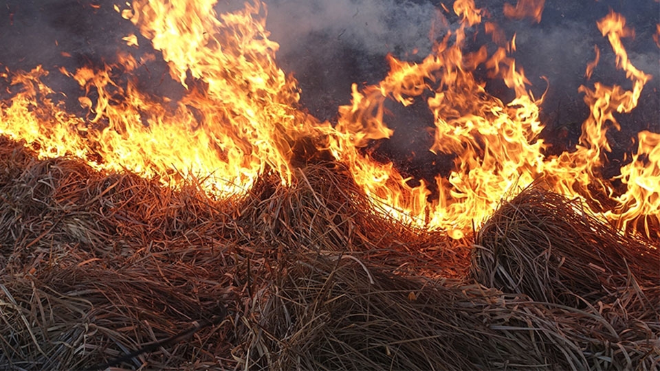 Жители Широкого пытались потушить сено сами и обожгли руки