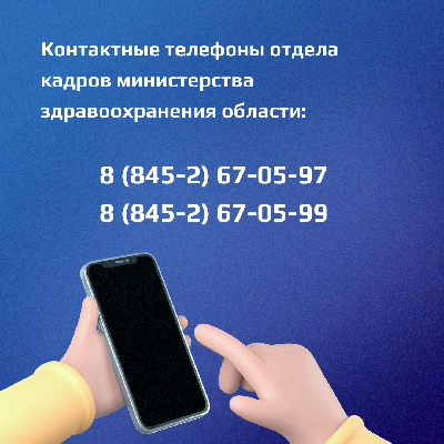 Контактные телефоны отдела кадров министерства здравоохранения области: (845-2) 67-05-97, 67-05-99
