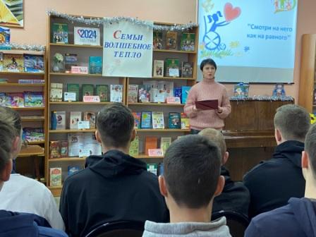 Сотрудники библиотеки рассказали об истории происхождения этого дня и цели его появления, о необходимости гуманного и заботливого отношения к людям с ограниченными возможностями.